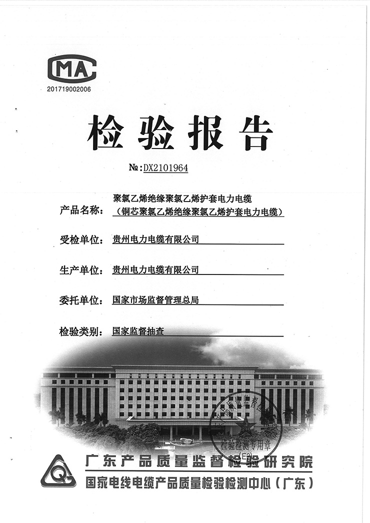 聚氯乙烯乙烯絕緣電纜電線 國家強制性產(chǎn)品試驗認證報告